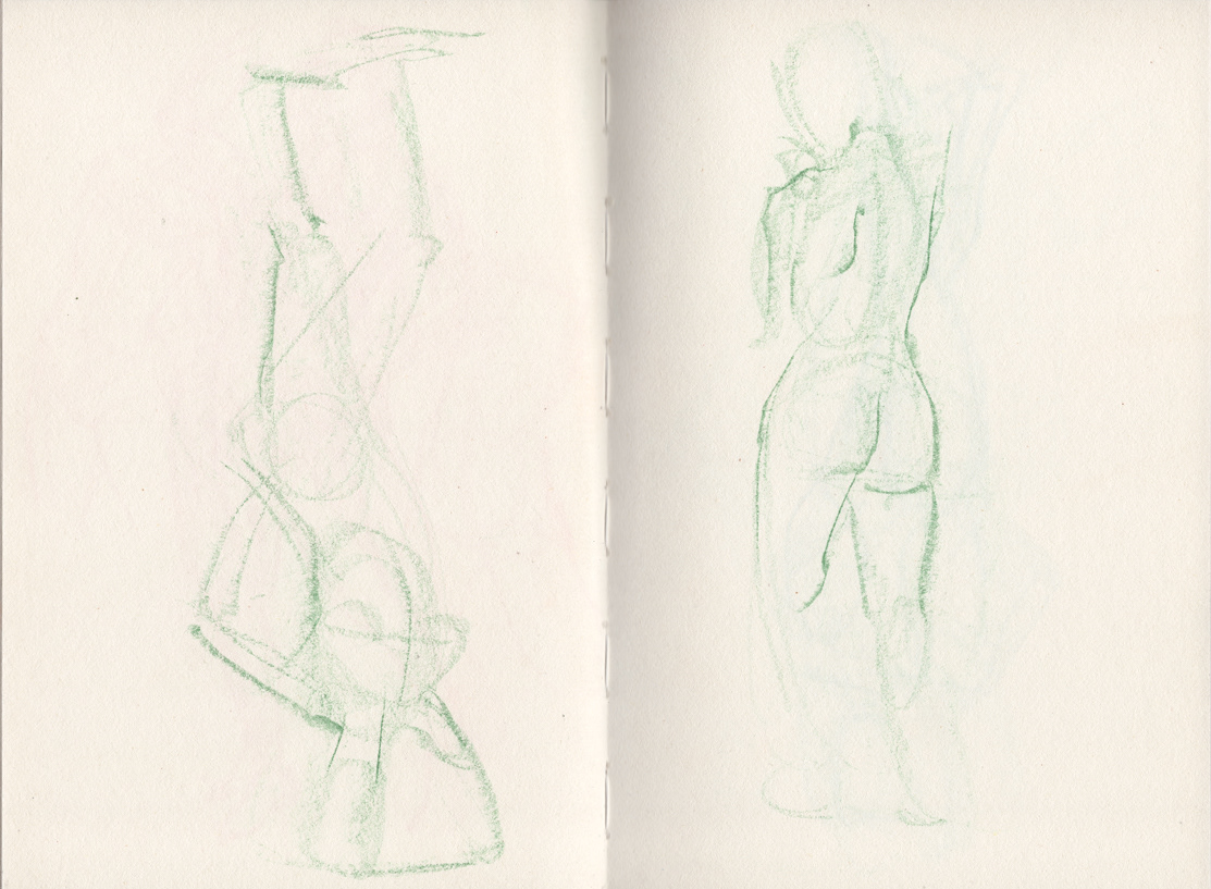 Szkicownik ukończony latem 2023 roku. Poświęcony całkowicie kroczkom, czyli szybkim szkicom postaci, mającym na celu oddanie charakteru pozy i jej dynamiki. Większość rysunków zajęła 1-2 minuty, kilka dłuższych szkiców do 5 minut, sporo szkiców poniżej minuty. Rysowanie kroczków jest bardzo wartościowym ćwiczeniem na wielu płaszczyznach: rozgrzewamy się, poprawiamy koordynację oko-ręka, uzyskujemy szybka informację zwrotną na temat tego, co rozumiemy przestrzennie w anatomii, a nad czym należy popracować.